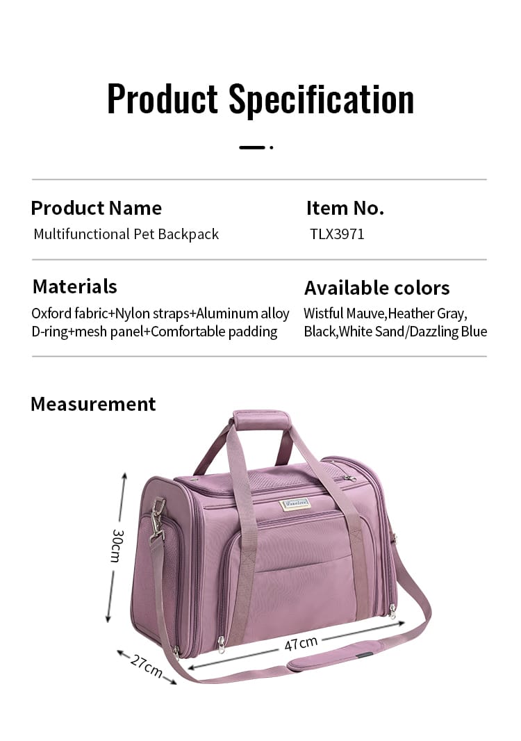 • Breathable Mesh Panel:Ensures optimal airflow, maintaining natural ventilation.Allows pets to view their surroundings, reducing anxiety during travels.