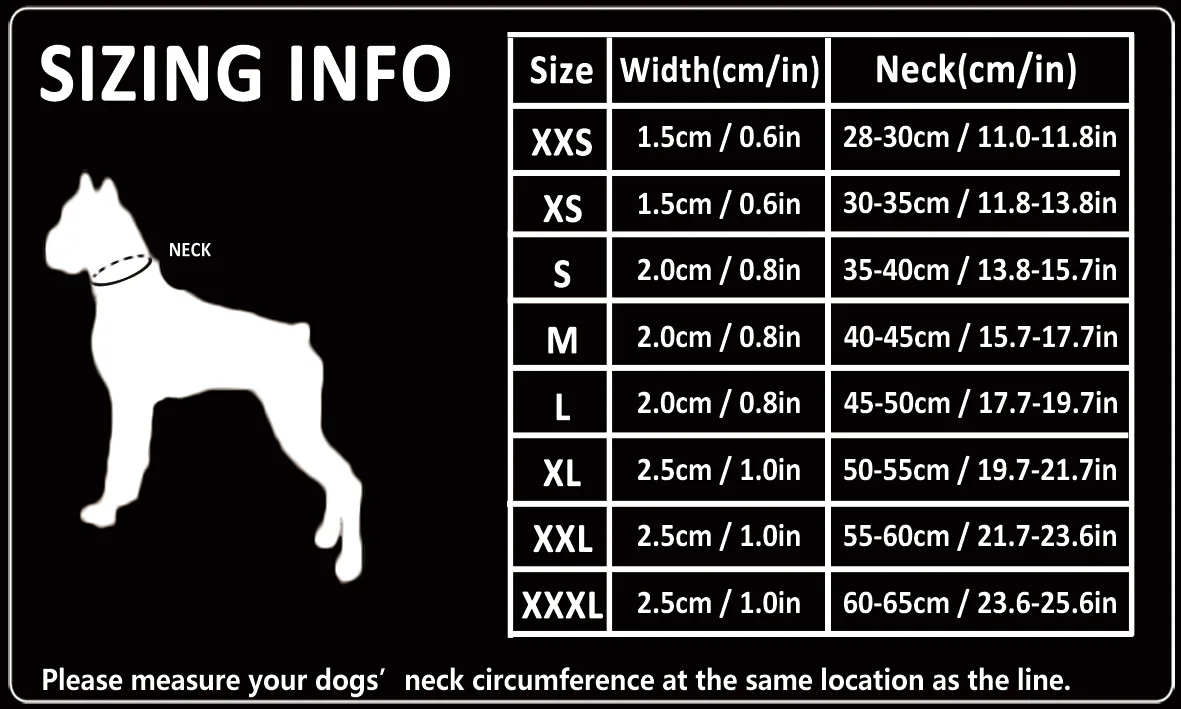- Soft neoprene padded design ensures ultimate comfort and protection for your dog’s neck.