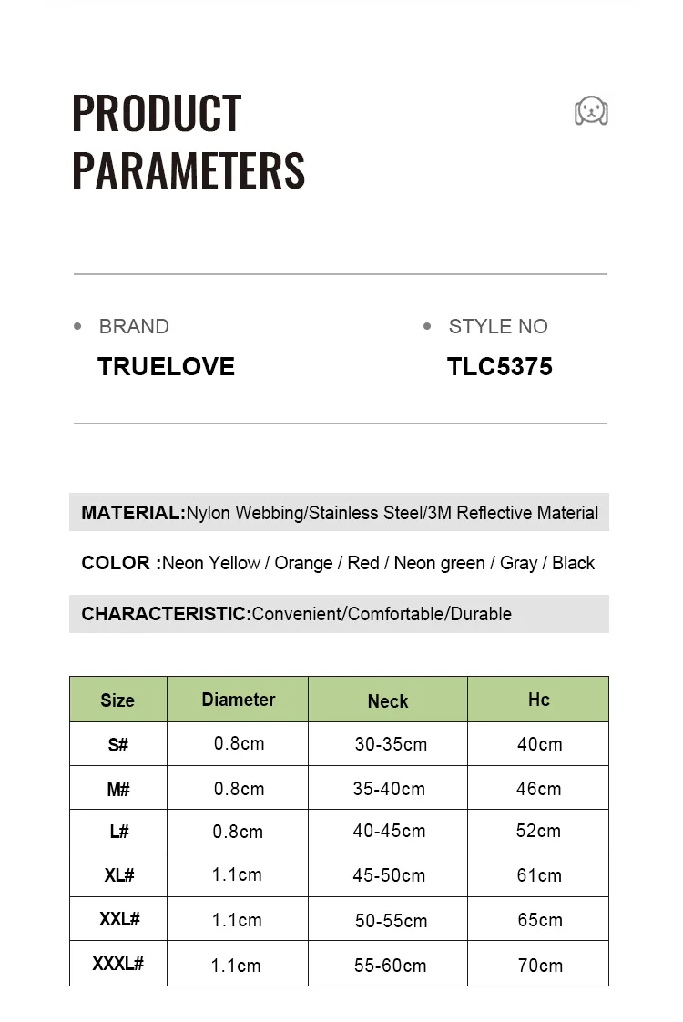 Introducing the Truelove Reflective Dog Collar (TLC5375) – A perfect blend of style and safety. Our collar features durable nylon rope webbing with 3M reflective properties, ensuring your pet’s visibility during night walks. The added stainless steel chain provides extra security for your furry friend.