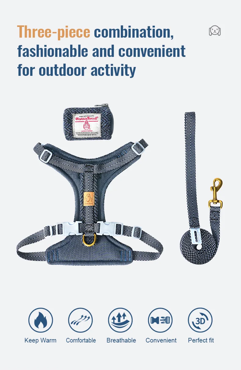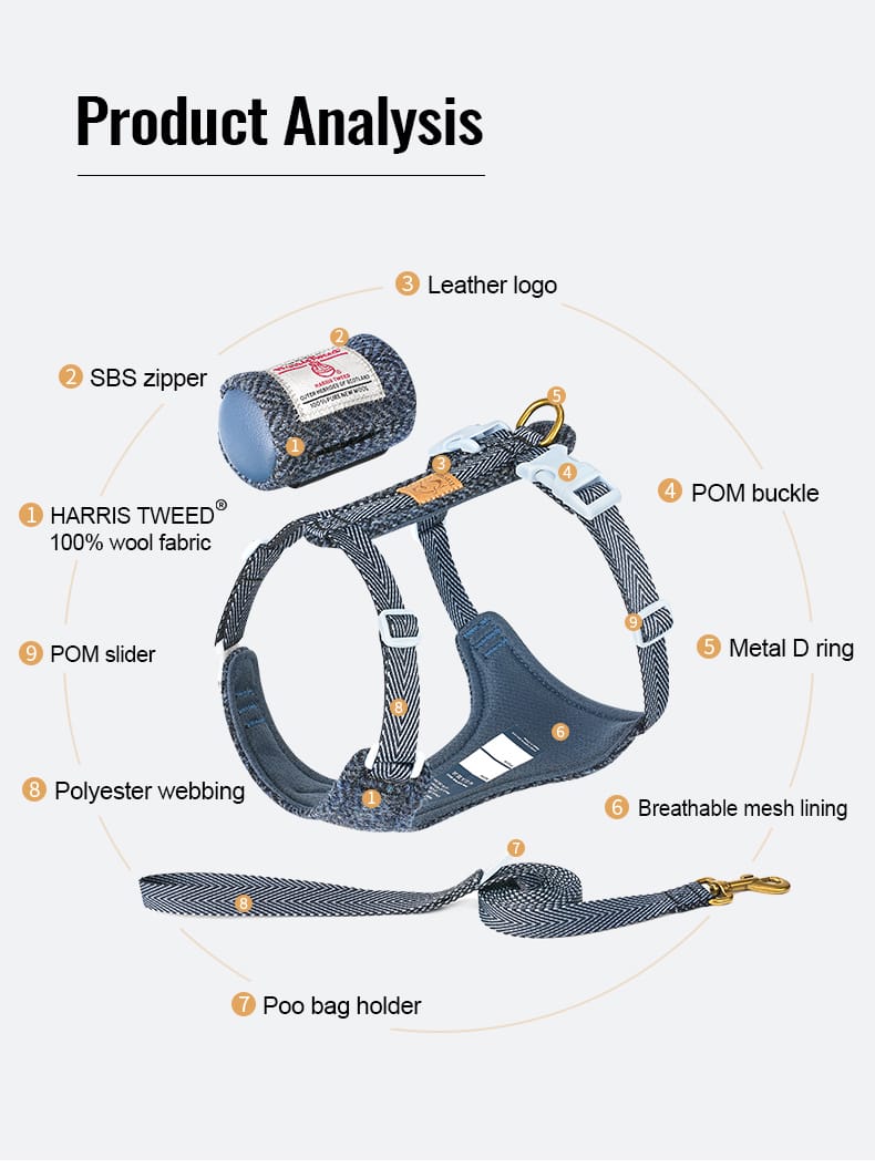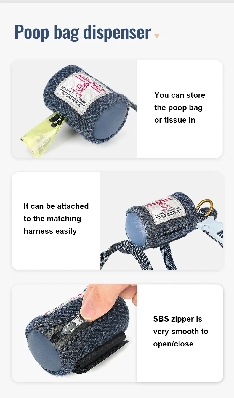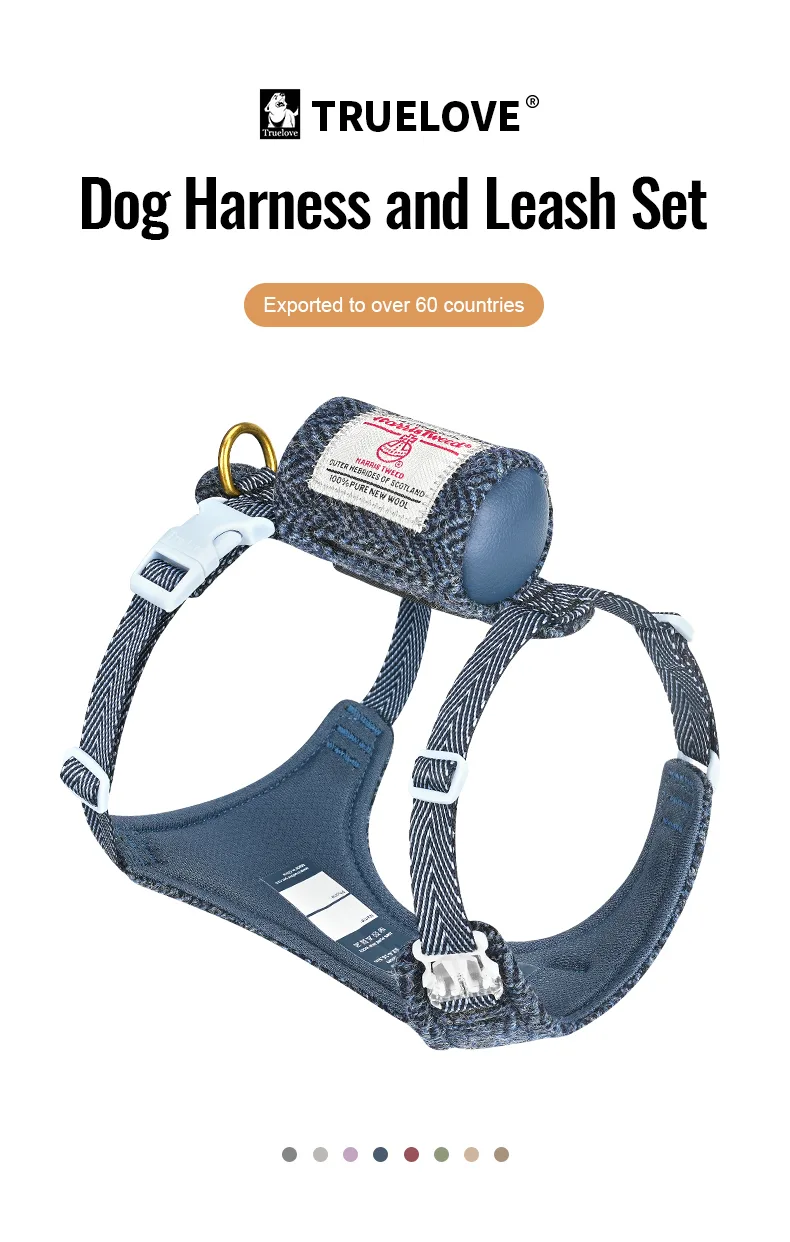 Introducing the Truelove TLH2912 pet harness, a stylish and practical solution for your pet’s outdoor adventures. This three-piece set is not just fashionable but incredibly convenient for any activity. Crafted from 100% HARRIS TWEED wool fabric, it offers a softer and warmer experience for your pet, complemented by a breathable mesh lining for added comfort. The harness features a PC buckle at the neck, allowing for easy wear without the hassle of pulling it over your dog’s head. Its POM buckle is designed for elasticity and toughness, ensuring a secure fit without catching your pet’s hair. The harness also includes a metal D-ring on the back for leash attachment, making it ideal for walks and outings. Additionally, it comes with a matching poop bag dispenser, ensuring you’re always prepared for outdoor excursions. The Truelove TLH2912 harness combines style, comfort, and practicality, making it an excellent choice for pet owners who value both aesthetics and functionality.