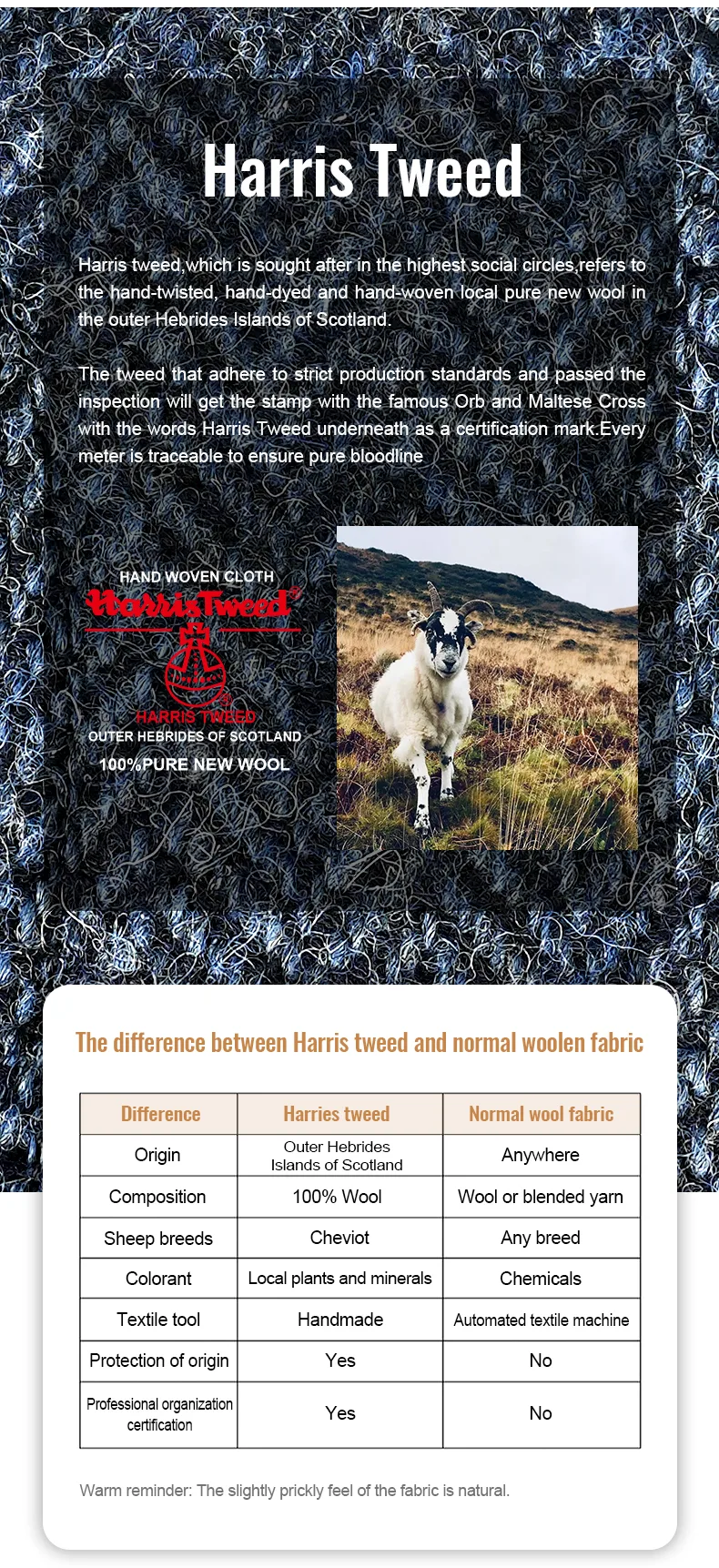 - Luxurious Material: Made from 100% HARRIS TWEED wool fabric, offering a softer, warmer feel.