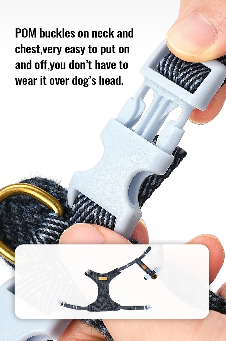 - Easy-to-Use Neck Buckle: Features a PC buckle at the neck for effortless wear, eliminating the need to pull over the dog’s head.