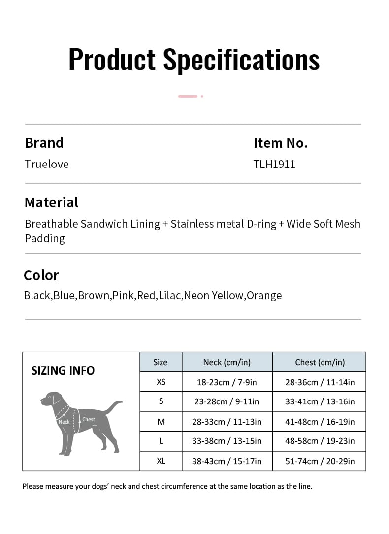 TLH1911 Comfortable Mesh Dog Harness – a stylish and comfortable option for your furry friend. Featuring soft and breathable mesh for superior comfort, terylene piping for added comfort around the legs, and a metal D-ring for leash attachment. Fashion meets function with this harness, keeping your pooch secure and looking stylish. And for easy maintenance, hand wash in cold water and lay flat to dry.