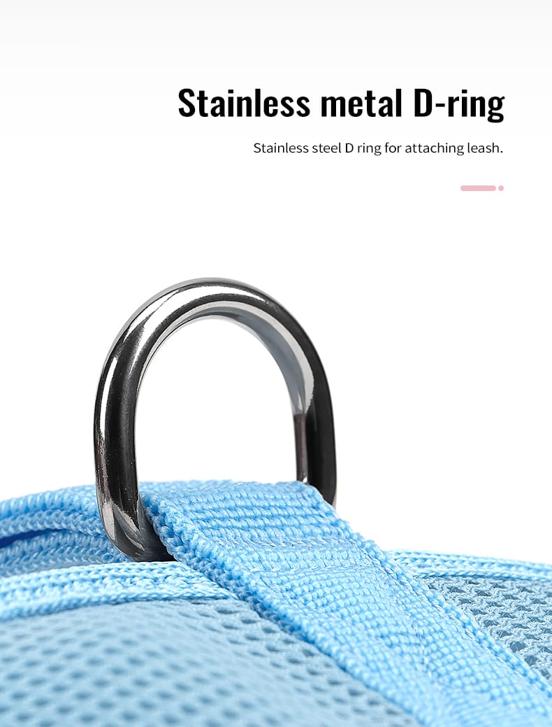• Leash attachment point: The metal D-ring on the harness provides a secure attachment point for your leash.