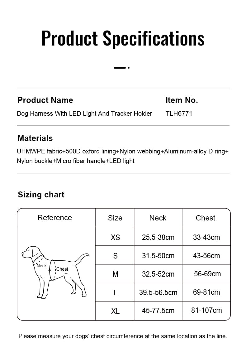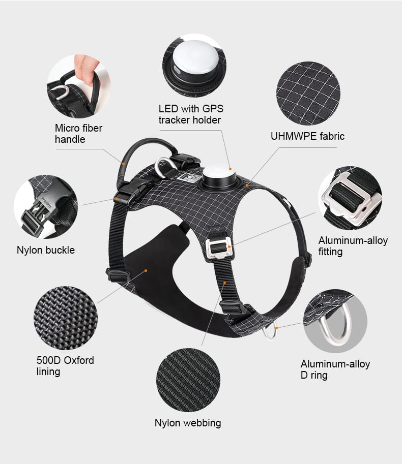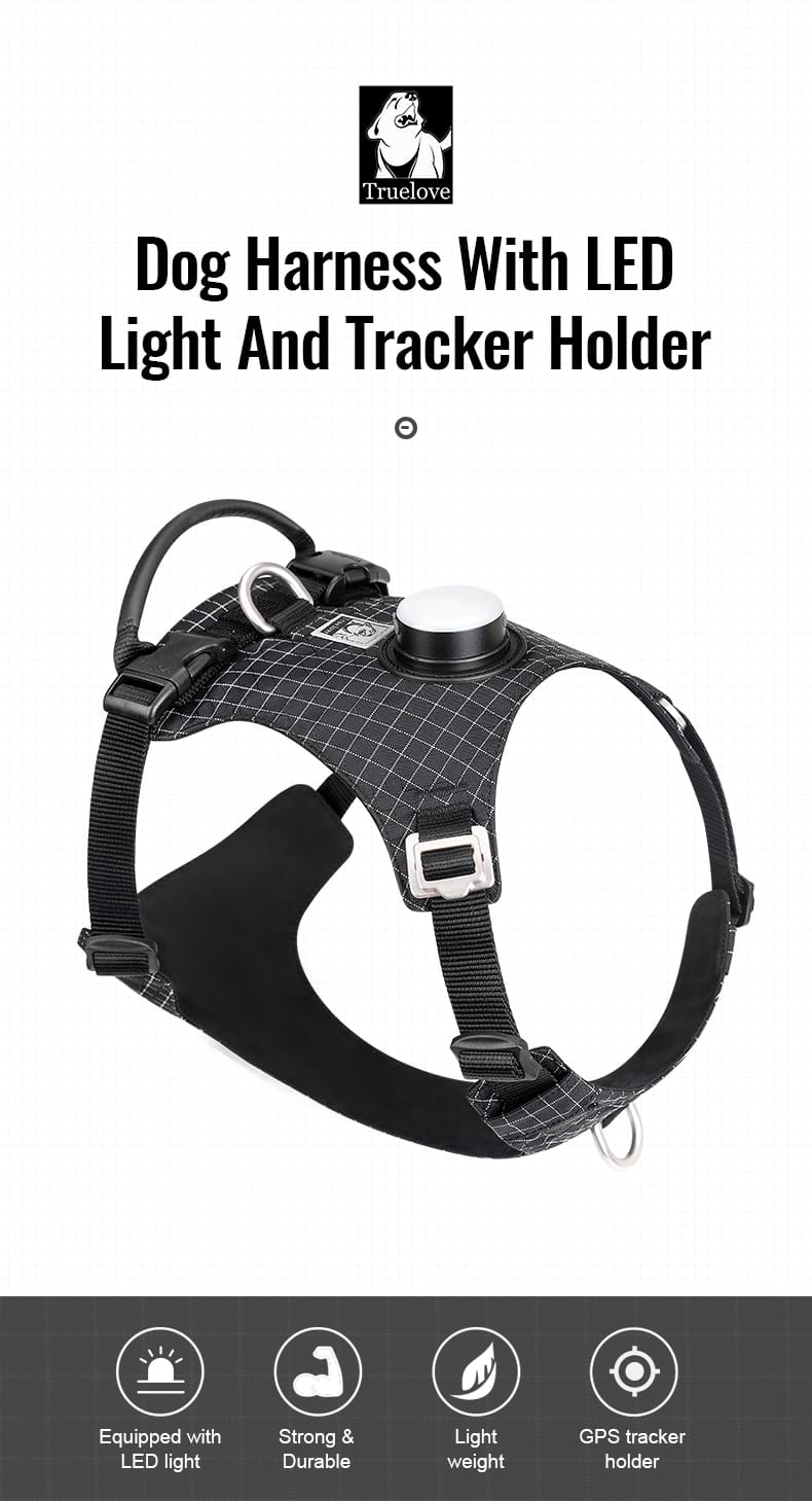 Introduce your pet to the cutting-edge Truelove TLH6771 harness, a blend of technology and comfort designed for the modern pet and owner. This innovative harness is equipped with an LED light, enhancing visibility during night walks, and a built-in GPS tracker holder, compatible with AirTag or HUAWEI Tag, ensuring your pet’s safety and your peace of mind. Crafted with a durable nylon outer fabric and a skin-friendly polyamide lining, it offers both durability and comfort. The microfiber-wrapped handle provides a strong grip and is resistant to pulling, enabling better control and safety for your dog. Additionally, the harness features a lightweight yet sturdy aluminum alloy buckle at the neck, simplifying the process of putting it on without the need to pull it over your dog’s head. The Truelove TLH6771 harness is an embodiment of safety, convenience, and comfort, making it an essential accessory for any responsible pet owner.