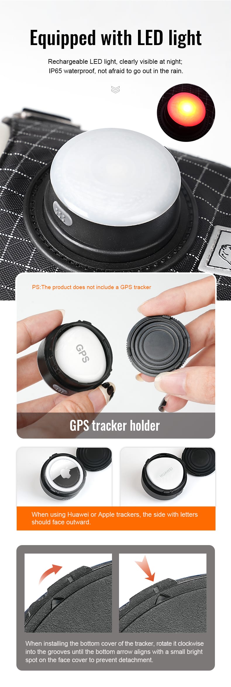 - GPS Tracker Compatibility: Features a built-in holder for GPS trackers like AirTag or HUAWEI Tag, ensuring pet safety and owner peace of mind.