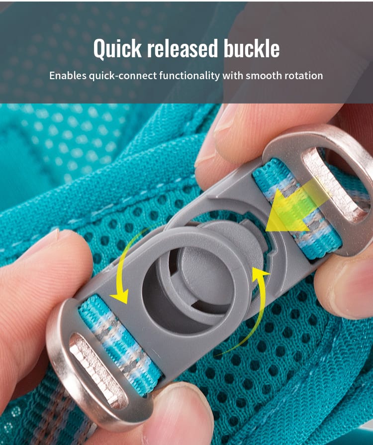 - 3D sandwich mesh lining circulates air 40% better than standard harnesses
