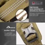• Strong and reliable: The Duraflex® PC buckles on both sides of the harness have a large loading capacity, significantly improving the harness’s tensile strength for added durability and security.