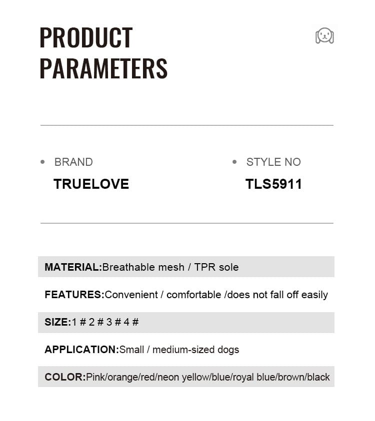 Experience ultimate comfort and protection for your pet’s paws with TLS5911 Pet Shoes. Made with breathable mesh fabric, featuring a convenient zipper for easy on and off, and a non-slip TPR sole for enhanced traction.