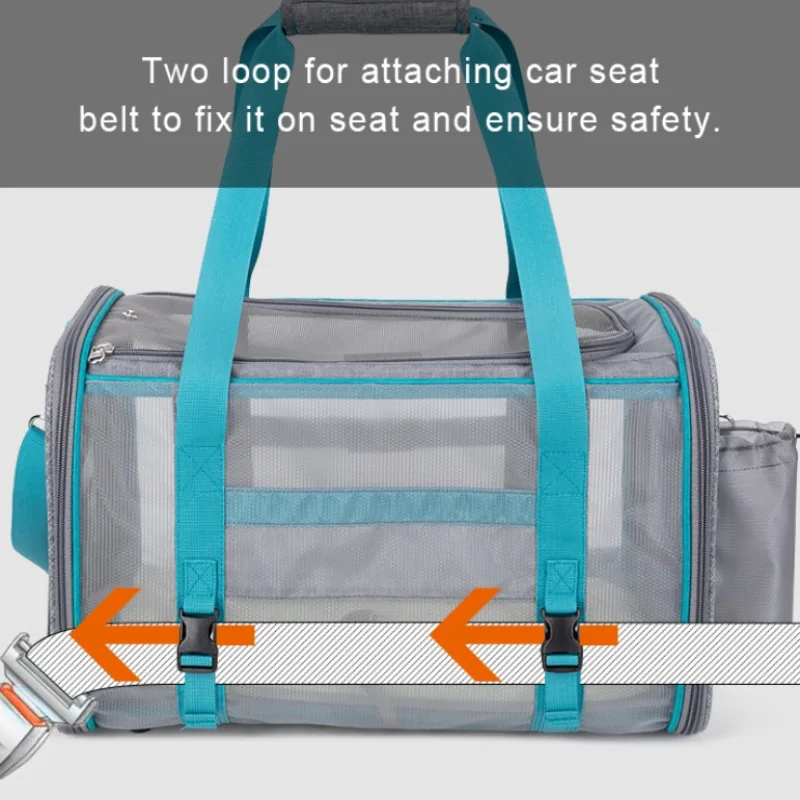 • 360-Degree Mesh Panels: Ensures consistent airflow from every angle, reducing stress for pets and allowing them an unobstructed view of their surroundings.