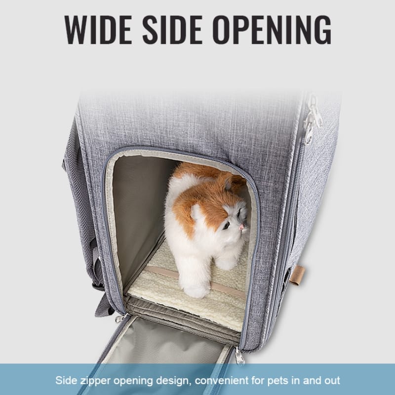 • Quick Access Openings: The backpack features two quick access openings on both sides for easy access to your pet.