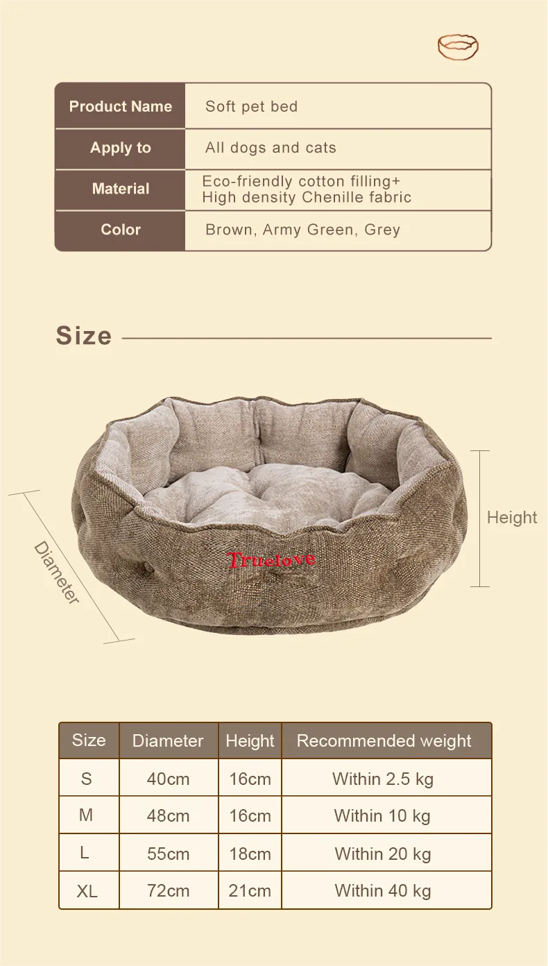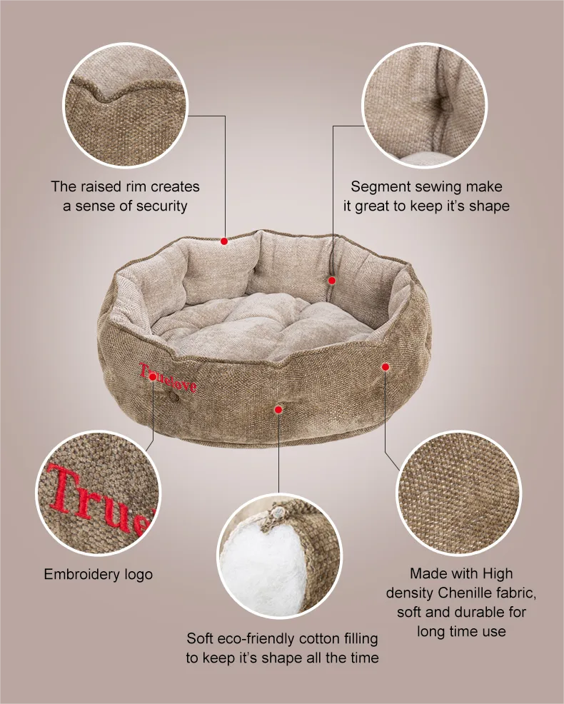 Experience unparalleled comfort and style with Truelove’s Pet Nest Mat. Crafted meticulously from high-density Chenille fabric, this pet mat exudes luxury while promising longevity. Its innovative raised rim design, accentuated by segmented sewing, offers pets a snug embrace, reminiscent of a mother’s protective hold. Inside, the eco-friendly cotton filling ensures consistent cushioning and warmth, perfect for those cozy nap times. With a range of elegant colors, it’s not just a bed—it’s a statement piece that complements any room decor. The reversible and removable feature adds a touch of convenience, making maintenance a breeze. Designed with your pet’s security in mind, the round shape further reinforces a safe haven for restful slumbers. Choose Truelove; choose comfort reimagined.