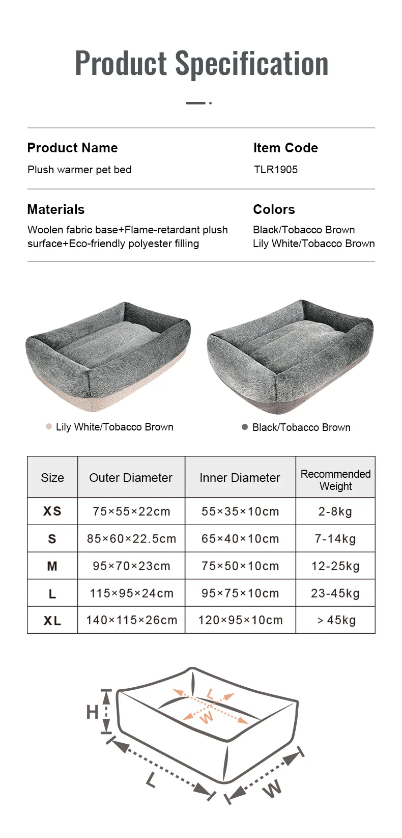 Introducing the Truelove TLR1905, a luxurious pet bed designed to provide maximum warmth, comfort, and convenience. Equipped with artificial long plush, this bed offers excellent warmth retention and a delicate hand feel, making it easy to clean and resistant to shedding. The eco-friendly silk floss filling ensures superior support and long-lasting recovery, providing a soft and warm environment for your pet. The reversible and removable mat adds versatility and ease of cleaning. The cover, equipped with a zipper, is also machine washable. For added convenience, the bed features a matching handle design, making it easy to carry. The Truelove TLR1905 pet bed is the perfect choice for pet owners seeking the ultimate in comfort and practicality for their pets.